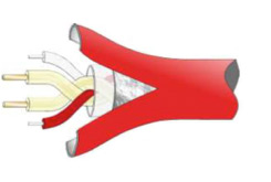 Analogue Cable consists of four cores. The two cores with clear outer coating consist of a copper conductor coated in a temperature sensitive polymer whose resistance changes as a function of temperature. Another two cores with white and red outer sheath provides calibration resistance and monitors average ambient temperature respectively.
